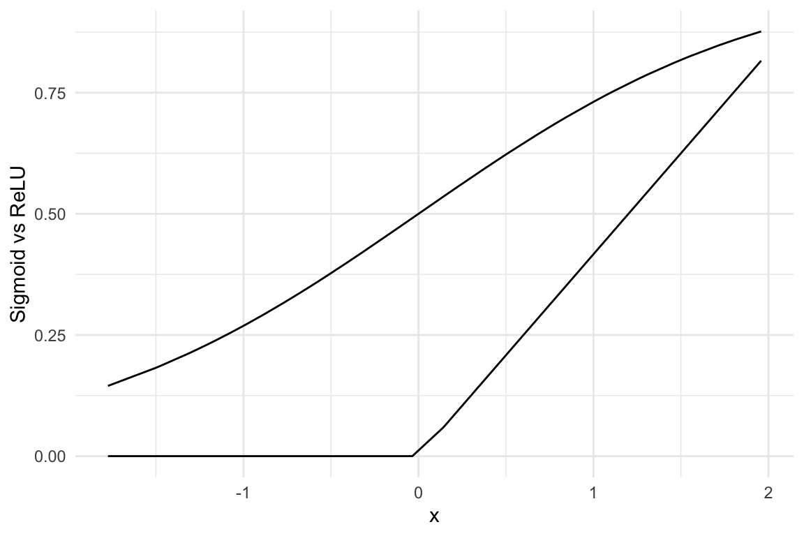 And now look at how the Sigmoid differs from the ReLU function: