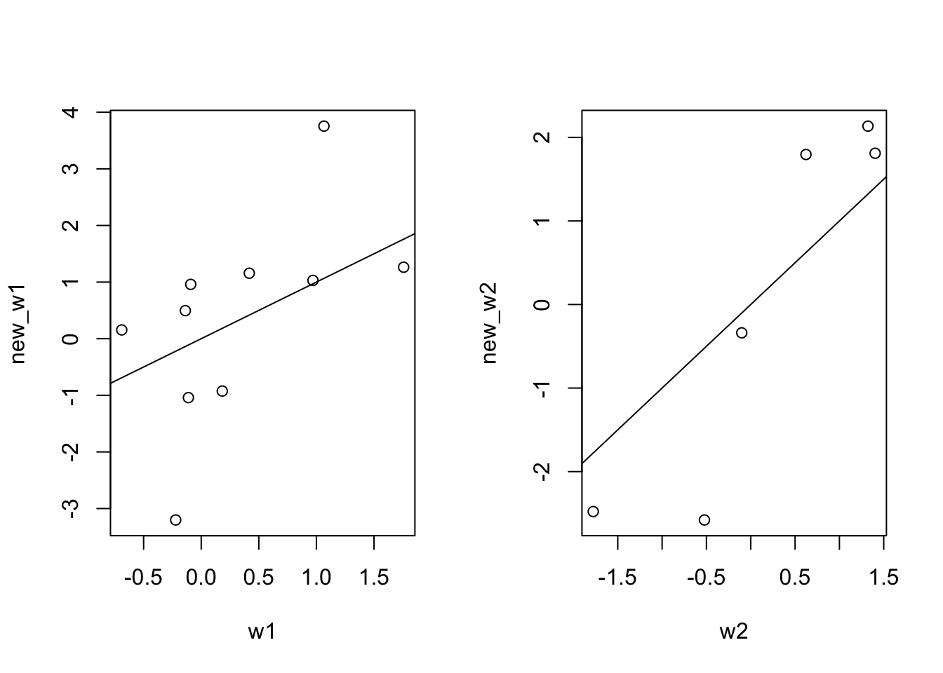new_w2 <- model[[1]][[2]]Comparing our old weight matrices against the new ones.